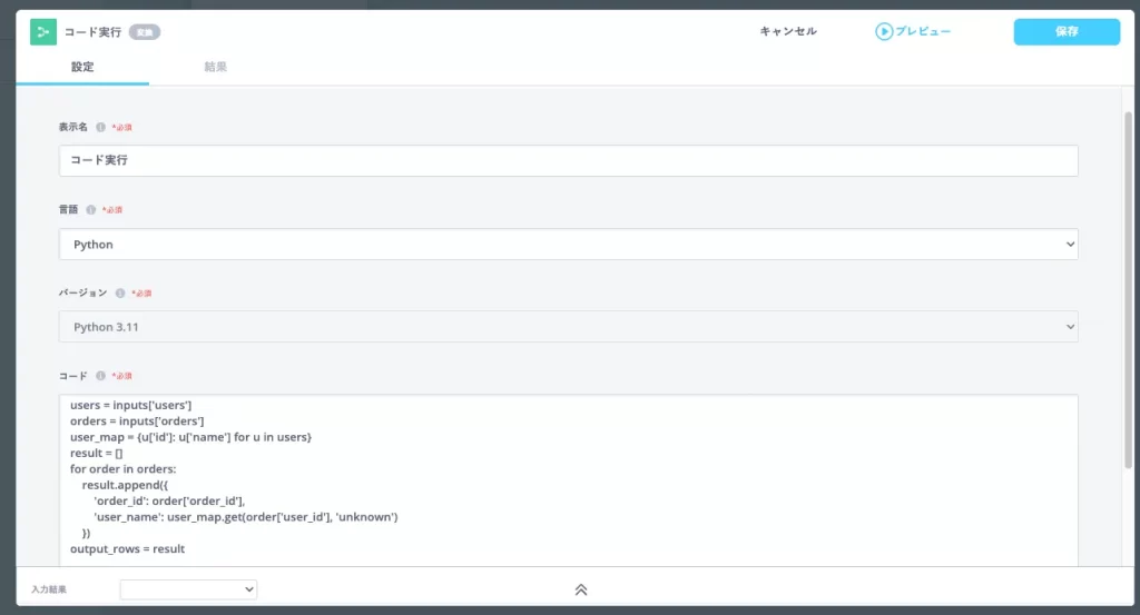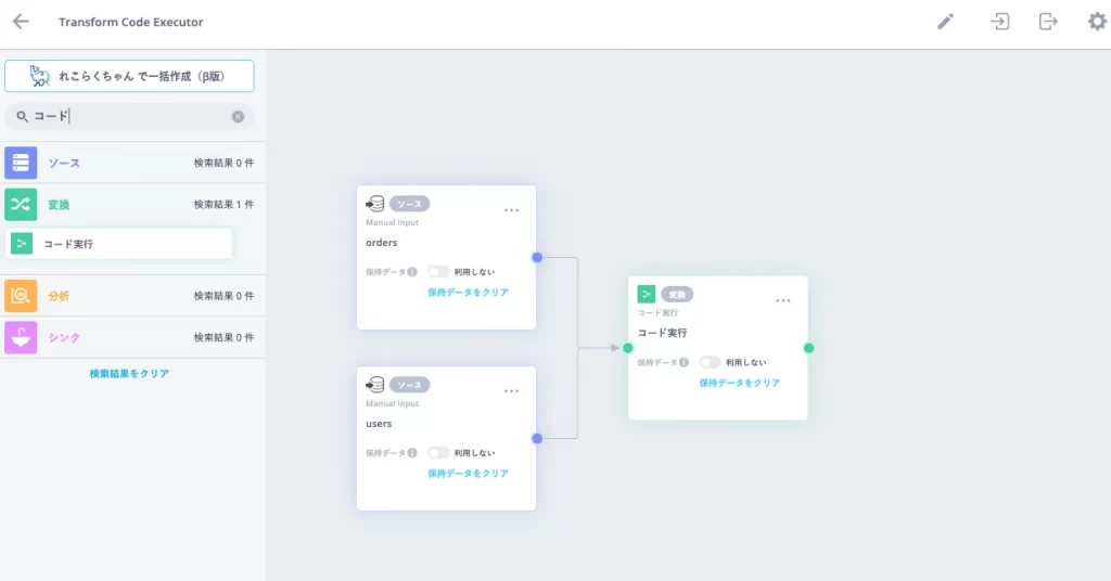ノーコードによる直感的な操作に加え、コード実行にも対応し、複雑な条件分岐や独自ロジックにも柔軟に対応可能です。これにより、専門的な知識に依存しない運用と高度な要件への対応を両立し、継続的かつ安定したデータ活用を可能にします。